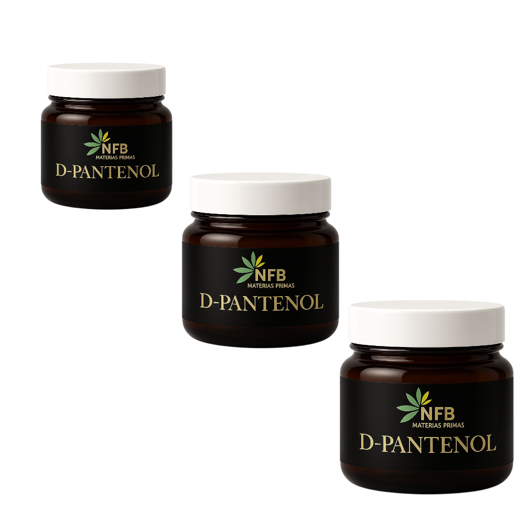 Descripción / beneficios El D-Pantenol de NFB Materias Primas es una provitamina B5, esencial en cosmética y dermatología por sus propiedades hidratantes, reparadoras y antiinflamatorias. Su capacidad para atraer y retener la humedad lo convierte en un potente humectante, ayudando a mantener la piel y el cabello profundamente hidratados.